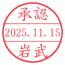 オプションの「電子透かし」をチェックし[生成]すると、見た目には分からないように、UNIXタイムスタンプを識別情報としてPNG形式の日付印に埋め込みます。 日付スタンプメーカーの使い方「部署」「名前」は最大8文字まで入力が可能です。「スタンプの色」を選択し、[生成]ボタン押下で印影画像が更新され、背景を透明に設定したPNG形式とPDF形式の印影画像がリンクからダウンロードできます。 オプションの「電子透かし」は、その性格上日付印ととても相性の良い付加サービスです。 別ページの「タイムスタンプと電子透かし」でも詳しく解説しますが、このオプションを追加することで、日付印が生成された日時に確かにその印が存在していることが証明されます。 ![]() 岩武さんの電子印鑑が作れます。社内でのデータ書類閲覧確認用など、認印的な使い方のできる電子印鑑が作れます。 ![]() 古代文字で落款印が作れます。「落款スタンプメーカー」で作品を引き立たせる落款印が作れます。