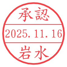 オプションの「電子透かし」をチェックし[生成]すると、見た目には分からないように、UNIXタイムスタンプを識別情報としてPNG形式の日付印に埋め込みます。 日付スタンプメーカーの使い方「部署」「名前」は最大8文字まで入力が可能です。「スタンプの色」を選択し、[生成]ボタン押下で印影画像が更新され、背景を透明に設定したPNG形式とPDF形式の印影画像がリンクからダウンロードできます。 オプションの「電子透かし」は、その性格上日付印ととても相性の良い付加サービスです。 別ページの「タイムスタンプと電子透かし」でも詳しく解説しますが、このオプションを追加することで、日付印が生成された日時に確かにその印が存在していることが証明されます。 ![]() 岩水さんの電子印鑑が作れます。社内でのデータ書類閲覧確認用など、認印的な使い方のできる電子印鑑が作れます。 ![]() 古代文字で落款印が作れます。「落款スタンプメーカー」で作品を引き立たせる落款印が作れます。