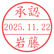オプションの「電子透かし」をチェックし[生成]すると、見た目には分からないように、UNIXタイムスタンプを識別情報としてPNG形式の日付印に埋め込みます。 日付スタンプメーカーの使い方「部署」「名前」は最大8文字まで入力が可能です。「スタンプの色」を選択し、[生成]ボタン押下で印影画像が更新され、背景を透明に設定したPNG形式とPDF形式の印影画像がリンクからダウンロードできます。 オプションの「電子透かし」は、その性格上日付印ととても相性の良い付加サービスです。 別ページの「タイムスタンプと電子透かし」でも詳しく解説しますが、このオプションを追加することで、日付印が生成された日時に確かにその印が存在していることが証明されます。 ![]() 岩藤さんの電子印鑑が作れます。社内でのデータ書類閲覧確認用など、認印的な使い方のできる電子印鑑が作れます。 ![]() 古代文字で落款印が作れます。「落款スタンプメーカー」で作品を引き立たせる落款印が作れます。