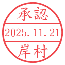 オプションの「電子透かし」をチェックし[生成]すると、見た目には分からないように、UNIXタイムスタンプを識別情報としてPNG形式の日付印に埋め込みます。 日付スタンプメーカーの使い方「部署」「名前」は最大8文字まで入力が可能です。「スタンプの色」を選択し、[生成]ボタン押下で印影画像が更新され、背景を透明に設定したPNG形式とPDF形式の印影画像がリンクからダウンロードできます。 オプションの「電子透かし」は、その性格上日付印ととても相性の良い付加サービスです。 別ページの「タイムスタンプと電子透かし」でも詳しく解説しますが、このオプションを追加することで、日付印が生成された日時に確かにその印が存在していることが証明されます。 ![]() 岸村さんの電子印鑑が作れます。社内でのデータ書類閲覧確認用など、認印的な使い方のできる電子印鑑が作れます。 ![]() 古代文字で落款印が作れます。「落款スタンプメーカー」で作品を引き立たせる落款印が作れます。