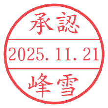 オプションの「電子透かし」をチェックし[生成]すると、見た目には分からないように、UNIXタイムスタンプを識別情報としてPNG形式の日付印に埋め込みます。 日付スタンプメーカーの使い方「部署」「名前」は最大8文字まで入力が可能です。「スタンプの色」を選択し、[生成]ボタン押下で印影画像が更新され、背景を透明に設定したPNG形式とPDF形式の印影画像がリンクからダウンロードできます。 オプションの「電子透かし」は、その性格上日付印ととても相性の良い付加サービスです。 別ページの「タイムスタンプと電子透かし」でも詳しく解説しますが、このオプションを追加することで、日付印が生成された日時に確かにその印が存在していることが証明されます。 ![]() 峰雪さんの電子印鑑が作れます。社内でのデータ書類閲覧確認用など、認印的な使い方のできる電子印鑑が作れます。 ![]() 古代文字で落款印が作れます。「落款スタンプメーカー」で作品を引き立たせる落款印が作れます。