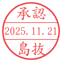 オプションの「電子透かし」をチェックし[生成]すると、見た目には分からないように、UNIXタイムスタンプを識別情報としてPNG形式の日付印に埋め込みます。 日付スタンプメーカーの使い方「部署」「名前」は最大8文字まで入力が可能です。「スタンプの色」を選択し、[生成]ボタン押下で印影画像が更新され、背景を透明に設定したPNG形式とPDF形式の印影画像がリンクからダウンロードできます。 オプションの「電子透かし」は、その性格上日付印ととても相性の良い付加サービスです。 別ページの「タイムスタンプと電子透かし」でも詳しく解説しますが、このオプションを追加することで、日付印が生成された日時に確かにその印が存在していることが証明されます。 ![]() 島抜さんの電子印鑑が作れます。社内でのデータ書類閲覧確認用など、認印的な使い方のできる電子印鑑が作れます。 ![]() 古代文字で落款印が作れます。「落款スタンプメーカー」で作品を引き立たせる落款印が作れます。