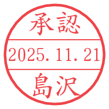 オプションの「電子透かし」をチェックし[生成]すると、見た目には分からないように、UNIXタイムスタンプを識別情報としてPNG形式の日付印に埋め込みます。 日付スタンプメーカーの使い方「部署」「名前」は最大8文字まで入力が可能です。「スタンプの色」を選択し、[生成]ボタン押下で印影画像が更新され、背景を透明に設定したPNG形式とPDF形式の印影画像がリンクからダウンロードできます。 オプションの「電子透かし」は、その性格上日付印ととても相性の良い付加サービスです。 別ページの「タイムスタンプと電子透かし」でも詳しく解説しますが、このオプションを追加することで、日付印が生成された日時に確かにその印が存在していることが証明されます。 ![]() 島沢さんの電子印鑑が作れます。社内でのデータ書類閲覧確認用など、認印的な使い方のできる電子印鑑が作れます。 ![]() 古代文字で落款印が作れます。「落款スタンプメーカー」で作品を引き立たせる落款印が作れます。