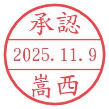 オプションの「電子透かし」をチェックし[生成]すると、見た目には分からないように、UNIXタイムスタンプを識別情報としてPNG形式の日付印に埋め込みます。 日付スタンプメーカーの使い方「部署」「名前」は最大8文字まで入力が可能です。「スタンプの色」を選択し、[生成]ボタン押下で印影画像が更新され、背景を透明に設定したPNG形式とPDF形式の印影画像がリンクからダウンロードできます。 オプションの「電子透かし」は、その性格上日付印ととても相性の良い付加サービスです。 別ページの「タイムスタンプと電子透かし」でも詳しく解説しますが、このオプションを追加することで、日付印が生成された日時に確かにその印が存在していることが証明されます。 ![]() 嵩西さんの電子印鑑が作れます。社内でのデータ書類閲覧確認用など、認印的な使い方のできる電子印鑑が作れます。 ![]() 古代文字で落款印が作れます。「落款スタンプメーカー」で作品を引き立たせる落款印が作れます。