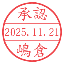 オプションの「電子透かし」をチェックし[生成]すると、見た目には分からないように、UNIXタイムスタンプを識別情報としてPNG形式の日付印に埋め込みます。 日付スタンプメーカーの使い方「部署」「名前」は最大8文字まで入力が可能です。「スタンプの色」を選択し、[生成]ボタン押下で印影画像が更新され、背景を透明に設定したPNG形式とPDF形式の印影画像がリンクからダウンロードできます。 オプションの「電子透かし」は、その性格上日付印ととても相性の良い付加サービスです。 別ページの「タイムスタンプと電子透かし」でも詳しく解説しますが、このオプションを追加することで、日付印が生成された日時に確かにその印が存在していることが証明されます。 ![]() 嶋倉さんの電子印鑑が作れます。社内でのデータ書類閲覧確認用など、認印的な使い方のできる電子印鑑が作れます。 ![]() 古代文字で落款印が作れます。「落款スタンプメーカー」で作品を引き立たせる落款印が作れます。