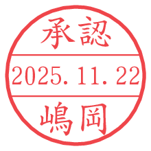 オプションの「電子透かし」をチェックし[生成]すると、見た目には分からないように、UNIXタイムスタンプを識別情報としてPNG形式の日付印に埋め込みます。 日付スタンプメーカーの使い方「部署」「名前」は最大8文字まで入力が可能です。「スタンプの色」を選択し、[生成]ボタン押下で印影画像が更新され、背景を透明に設定したPNG形式とPDF形式の印影画像がリンクからダウンロードできます。 オプションの「電子透かし」は、その性格上日付印ととても相性の良い付加サービスです。 別ページの「タイムスタンプと電子透かし」でも詳しく解説しますが、このオプションを追加することで、日付印が生成された日時に確かにその印が存在していることが証明されます。 ![]() 嶋岡さんの電子印鑑が作れます。社内でのデータ書類閲覧確認用など、認印的な使い方のできる電子印鑑が作れます。 ![]() 古代文字で落款印が作れます。「落款スタンプメーカー」で作品を引き立たせる落款印が作れます。