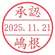 オプションの「電子透かし」をチェックし[生成]すると、見た目には分からないように、UNIXタイムスタンプを識別情報としてPNG形式の日付印に埋め込みます。 日付スタンプメーカーの使い方「部署」「名前」は最大8文字まで入力が可能です。「スタンプの色」を選択し、[生成]ボタン押下で印影画像が更新され、背景を透明に設定したPNG形式とPDF形式の印影画像がリンクからダウンロードできます。 オプションの「電子透かし」は、その性格上日付印ととても相性の良い付加サービスです。 別ページの「タイムスタンプと電子透かし」でも詳しく解説しますが、このオプションを追加することで、日付印が生成された日時に確かにその印が存在していることが証明されます。 ![]() 嶋根さんの電子印鑑が作れます。社内でのデータ書類閲覧確認用など、認印的な使い方のできる電子印鑑が作れます。 ![]() 古代文字で落款印が作れます。「落款スタンプメーカー」で作品を引き立たせる落款印が作れます。