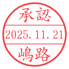 オプションの「電子透かし」をチェックし[生成]すると、見た目には分からないように、UNIXタイムスタンプを識別情報としてPNG形式の日付印に埋め込みます。 日付スタンプメーカーの使い方「部署」「名前」は最大8文字まで入力が可能です。「スタンプの色」を選択し、[生成]ボタン押下で印影画像が更新され、背景を透明に設定したPNG形式とPDF形式の印影画像がリンクからダウンロードできます。 オプションの「電子透かし」は、その性格上日付印ととても相性の良い付加サービスです。 別ページの「タイムスタンプと電子透かし」でも詳しく解説しますが、このオプションを追加することで、日付印が生成された日時に確かにその印が存在していることが証明されます。 ![]() 嶋路さんの電子印鑑が作れます。社内でのデータ書類閲覧確認用など、認印的な使い方のできる電子印鑑が作れます。 ![]() 古代文字で落款印が作れます。「落款スタンプメーカー」で作品を引き立たせる落款印が作れます。