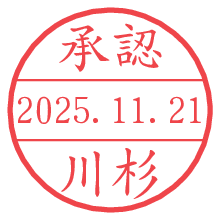 オプションの「電子透かし」をチェックし[生成]すると、見た目には分からないように、UNIXタイムスタンプを識別情報としてPNG形式の日付印に埋め込みます。 日付スタンプメーカーの使い方「部署」「名前」は最大8文字まで入力が可能です。「スタンプの色」を選択し、[生成]ボタン押下で印影画像が更新され、背景を透明に設定したPNG形式とPDF形式の印影画像がリンクからダウンロードできます。 オプションの「電子透かし」は、その性格上日付印ととても相性の良い付加サービスです。 別ページの「タイムスタンプと電子透かし」でも詳しく解説しますが、このオプションを追加することで、日付印が生成された日時に確かにその印が存在していることが証明されます。 ![]() 川杉さんの電子印鑑が作れます。社内でのデータ書類閲覧確認用など、認印的な使い方のできる電子印鑑が作れます。 ![]() 古代文字で落款印が作れます。「落款スタンプメーカー」で作品を引き立たせる落款印が作れます。