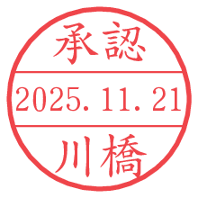 オプションの「電子透かし」をチェックし[生成]すると、見た目には分からないように、UNIXタイムスタンプを識別情報としてPNG形式の日付印に埋め込みます。 日付スタンプメーカーの使い方「部署」「名前」は最大8文字まで入力が可能です。「スタンプの色」を選択し、[生成]ボタン押下で印影画像が更新され、背景を透明に設定したPNG形式とPDF形式の印影画像がリンクからダウンロードできます。 オプションの「電子透かし」は、その性格上日付印ととても相性の良い付加サービスです。 別ページの「タイムスタンプと電子透かし」でも詳しく解説しますが、このオプションを追加することで、日付印が生成された日時に確かにその印が存在していることが証明されます。 ![]() 川橋さんの電子印鑑が作れます。社内でのデータ書類閲覧確認用など、認印的な使い方のできる電子印鑑が作れます。 ![]() 古代文字で落款印が作れます。「落款スタンプメーカー」で作品を引き立たせる落款印が作れます。
