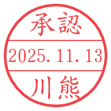 オプションの「電子透かし」をチェックし[生成]すると、見た目には分からないように、UNIXタイムスタンプを識別情報としてPNG形式の日付印に埋め込みます。 日付スタンプメーカーの使い方「部署」「名前」は最大8文字まで入力が可能です。「スタンプの色」を選択し、[生成]ボタン押下で印影画像が更新され、背景を透明に設定したPNG形式とPDF形式の印影画像がリンクからダウンロードできます。 オプションの「電子透かし」は、その性格上日付印ととても相性の良い付加サービスです。 別ページの「タイムスタンプと電子透かし」でも詳しく解説しますが、このオプションを追加することで、日付印が生成された日時に確かにその印が存在していることが証明されます。 ![]() 川熊さんの電子印鑑が作れます。社内でのデータ書類閲覧確認用など、認印的な使い方のできる電子印鑑が作れます。 ![]() 古代文字で落款印が作れます。「落款スタンプメーカー」で作品を引き立たせる落款印が作れます。