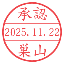 オプションの「電子透かし」をチェックし[生成]すると、見た目には分からないように、UNIXタイムスタンプを識別情報としてPNG形式の日付印に埋め込みます。 日付スタンプメーカーの使い方「部署」「名前」は最大8文字まで入力が可能です。「スタンプの色」を選択し、[生成]ボタン押下で印影画像が更新され、背景を透明に設定したPNG形式とPDF形式の印影画像がリンクからダウンロードできます。 オプションの「電子透かし」は、その性格上日付印ととても相性の良い付加サービスです。 別ページの「タイムスタンプと電子透かし」でも詳しく解説しますが、このオプションを追加することで、日付印が生成された日時に確かにその印が存在していることが証明されます。 ![]() 巣山さんの電子印鑑が作れます。社内でのデータ書類閲覧確認用など、認印的な使い方のできる電子印鑑が作れます。 ![]() 古代文字で落款印が作れます。「落款スタンプメーカー」で作品を引き立たせる落款印が作れます。