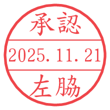 オプションの「電子透かし」をチェックし[生成]すると、見た目には分からないように、UNIXタイムスタンプを識別情報としてPNG形式の日付印に埋め込みます。 日付スタンプメーカーの使い方「部署」「名前」は最大8文字まで入力が可能です。「スタンプの色」を選択し、[生成]ボタン押下で印影画像が更新され、背景を透明に設定したPNG形式とPDF形式の印影画像がリンクからダウンロードできます。 オプションの「電子透かし」は、その性格上日付印ととても相性の良い付加サービスです。 別ページの「タイムスタンプと電子透かし」でも詳しく解説しますが、このオプションを追加することで、日付印が生成された日時に確かにその印が存在していることが証明されます。 ![]() 左脇さんの電子印鑑が作れます。社内でのデータ書類閲覧確認用など、認印的な使い方のできる電子印鑑が作れます。 ![]() 古代文字で落款印が作れます。「落款スタンプメーカー」で作品を引き立たせる落款印が作れます。