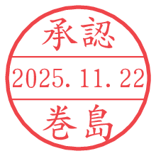 オプションの「電子透かし」をチェックし[生成]すると、見た目には分からないように、UNIXタイムスタンプを識別情報としてPNG形式の日付印に埋め込みます。 日付スタンプメーカーの使い方「部署」「名前」は最大8文字まで入力が可能です。「スタンプの色」を選択し、[生成]ボタン押下で印影画像が更新され、背景を透明に設定したPNG形式とPDF形式の印影画像がリンクからダウンロードできます。 オプションの「電子透かし」は、その性格上日付印ととても相性の良い付加サービスです。 別ページの「タイムスタンプと電子透かし」でも詳しく解説しますが、このオプションを追加することで、日付印が生成された日時に確かにその印が存在していることが証明されます。 ![]() 巻島さんの電子印鑑が作れます。社内でのデータ書類閲覧確認用など、認印的な使い方のできる電子印鑑が作れます。 ![]() 古代文字で落款印が作れます。「落款スタンプメーカー」で作品を引き立たせる落款印が作れます。