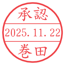オプションの「電子透かし」をチェックし[生成]すると、見た目には分からないように、UNIXタイムスタンプを識別情報としてPNG形式の日付印に埋め込みます。 日付スタンプメーカーの使い方「部署」「名前」は最大8文字まで入力が可能です。「スタンプの色」を選択し、[生成]ボタン押下で印影画像が更新され、背景を透明に設定したPNG形式とPDF形式の印影画像がリンクからダウンロードできます。 オプションの「電子透かし」は、その性格上日付印ととても相性の良い付加サービスです。 別ページの「タイムスタンプと電子透かし」でも詳しく解説しますが、このオプションを追加することで、日付印が生成された日時に確かにその印が存在していることが証明されます。 ![]() 巻田さんの電子印鑑が作れます。社内でのデータ書類閲覧確認用など、認印的な使い方のできる電子印鑑が作れます。 ![]() 古代文字で落款印が作れます。「落款スタンプメーカー」で作品を引き立たせる落款印が作れます。