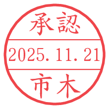 オプションの「電子透かし」をチェックし[生成]すると、見た目には分からないように、UNIXタイムスタンプを識別情報としてPNG形式の日付印に埋め込みます。 日付スタンプメーカーの使い方「部署」「名前」は最大8文字まで入力が可能です。「スタンプの色」を選択し、[生成]ボタン押下で印影画像が更新され、背景を透明に設定したPNG形式とPDF形式の印影画像がリンクからダウンロードできます。 オプションの「電子透かし」は、その性格上日付印ととても相性の良い付加サービスです。 別ページの「タイムスタンプと電子透かし」でも詳しく解説しますが、このオプションを追加することで、日付印が生成された日時に確かにその印が存在していることが証明されます。 ![]() 市木さんの電子印鑑が作れます。社内でのデータ書類閲覧確認用など、認印的な使い方のできる電子印鑑が作れます。 ![]() 古代文字で落款印が作れます。「落款スタンプメーカー」で作品を引き立たせる落款印が作れます。