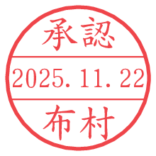 オプションの「電子透かし」をチェックし[生成]すると、見た目には分からないように、UNIXタイムスタンプを識別情報としてPNG形式の日付印に埋め込みます。 日付スタンプメーカーの使い方「部署」「名前」は最大8文字まで入力が可能です。「スタンプの色」を選択し、[生成]ボタン押下で印影画像が更新され、背景を透明に設定したPNG形式とPDF形式の印影画像がリンクからダウンロードできます。 オプションの「電子透かし」は、その性格上日付印ととても相性の良い付加サービスです。 別ページの「タイムスタンプと電子透かし」でも詳しく解説しますが、このオプションを追加することで、日付印が生成された日時に確かにその印が存在していることが証明されます。 ![]() 布村さんの電子印鑑が作れます。社内でのデータ書類閲覧確認用など、認印的な使い方のできる電子印鑑が作れます。 ![]() 古代文字で落款印が作れます。「落款スタンプメーカー」で作品を引き立たせる落款印が作れます。