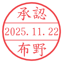 オプションの「電子透かし」をチェックし[生成]すると、見た目には分からないように、UNIXタイムスタンプを識別情報としてPNG形式の日付印に埋め込みます。 日付スタンプメーカーの使い方「部署」「名前」は最大8文字まで入力が可能です。「スタンプの色」を選択し、[生成]ボタン押下で印影画像が更新され、背景を透明に設定したPNG形式とPDF形式の印影画像がリンクからダウンロードできます。 オプションの「電子透かし」は、その性格上日付印ととても相性の良い付加サービスです。 別ページの「タイムスタンプと電子透かし」でも詳しく解説しますが、このオプションを追加することで、日付印が生成された日時に確かにその印が存在していることが証明されます。 ![]() 布野さんの電子印鑑が作れます。社内でのデータ書類閲覧確認用など、認印的な使い方のできる電子印鑑が作れます。 ![]() 古代文字で落款印が作れます。「落款スタンプメーカー」で作品を引き立たせる落款印が作れます。