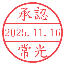 オプションの「電子透かし」をチェックし[生成]すると、見た目には分からないように、UNIXタイムスタンプを識別情報としてPNG形式の日付印に埋め込みます。 日付スタンプメーカーの使い方「部署」「名前」は最大8文字まで入力が可能です。「スタンプの色」を選択し、[生成]ボタン押下で印影画像が更新され、背景を透明に設定したPNG形式とPDF形式の印影画像がリンクからダウンロードできます。 オプションの「電子透かし」は、その性格上日付印ととても相性の良い付加サービスです。 別ページの「タイムスタンプと電子透かし」でも詳しく解説しますが、このオプションを追加することで、日付印が生成された日時に確かにその印が存在していることが証明されます。 ![]() 常光さんの電子印鑑が作れます。社内でのデータ書類閲覧確認用など、認印的な使い方のできる電子印鑑が作れます。 ![]() 古代文字で落款印が作れます。「落款スタンプメーカー」で作品を引き立たせる落款印が作れます。