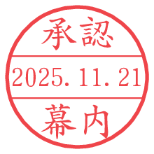 オプションの「電子透かし」をチェックし[生成]すると、見た目には分からないように、UNIXタイムスタンプを識別情報としてPNG形式の日付印に埋め込みます。 日付スタンプメーカーの使い方「部署」「名前」は最大8文字まで入力が可能です。「スタンプの色」を選択し、[生成]ボタン押下で印影画像が更新され、背景を透明に設定したPNG形式とPDF形式の印影画像がリンクからダウンロードできます。 オプションの「電子透かし」は、その性格上日付印ととても相性の良い付加サービスです。 別ページの「タイムスタンプと電子透かし」でも詳しく解説しますが、このオプションを追加することで、日付印が生成された日時に確かにその印が存在していることが証明されます。 ![]() 幕内さんの電子印鑑が作れます。社内でのデータ書類閲覧確認用など、認印的な使い方のできる電子印鑑が作れます。 ![]() 古代文字で落款印が作れます。「落款スタンプメーカー」で作品を引き立たせる落款印が作れます。