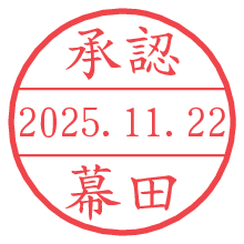 オプションの「電子透かし」をチェックし[生成]すると、見た目には分からないように、UNIXタイムスタンプを識別情報としてPNG形式の日付印に埋め込みます。 日付スタンプメーカーの使い方「部署」「名前」は最大8文字まで入力が可能です。「スタンプの色」を選択し、[生成]ボタン押下で印影画像が更新され、背景を透明に設定したPNG形式とPDF形式の印影画像がリンクからダウンロードできます。 オプションの「電子透かし」は、その性格上日付印ととても相性の良い付加サービスです。 別ページの「タイムスタンプと電子透かし」でも詳しく解説しますが、このオプションを追加することで、日付印が生成された日時に確かにその印が存在していることが証明されます。 ![]() 幕田さんの電子印鑑が作れます。社内でのデータ書類閲覧確認用など、認印的な使い方のできる電子印鑑が作れます。 ![]() 古代文字で落款印が作れます。「落款スタンプメーカー」で作品を引き立たせる落款印が作れます。