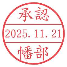 オプションの「電子透かし」をチェックし[生成]すると、見た目には分からないように、UNIXタイムスタンプを識別情報としてPNG形式の日付印に埋め込みます。 日付スタンプメーカーの使い方「部署」「名前」は最大8文字まで入力が可能です。「スタンプの色」を選択し、[生成]ボタン押下で印影画像が更新され、背景を透明に設定したPNG形式とPDF形式の印影画像がリンクからダウンロードできます。 オプションの「電子透かし」は、その性格上日付印ととても相性の良い付加サービスです。 別ページの「タイムスタンプと電子透かし」でも詳しく解説しますが、このオプションを追加することで、日付印が生成された日時に確かにその印が存在していることが証明されます。 ![]() 幡部さんの電子印鑑が作れます。社内でのデータ書類閲覧確認用など、認印的な使い方のできる電子印鑑が作れます。 ![]() 古代文字で落款印が作れます。「落款スタンプメーカー」で作品を引き立たせる落款印が作れます。