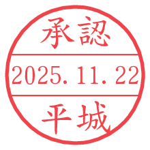 オプションの「電子透かし」をチェックし[生成]すると、見た目には分からないように、UNIXタイムスタンプを識別情報としてPNG形式の日付印に埋め込みます。 日付スタンプメーカーの使い方「部署」「名前」は最大8文字まで入力が可能です。「スタンプの色」を選択し、[生成]ボタン押下で印影画像が更新され、背景を透明に設定したPNG形式とPDF形式の印影画像がリンクからダウンロードできます。 オプションの「電子透かし」は、その性格上日付印ととても相性の良い付加サービスです。 別ページの「タイムスタンプと電子透かし」でも詳しく解説しますが、このオプションを追加することで、日付印が生成された日時に確かにその印が存在していることが証明されます。 ![]() 平城さんの電子印鑑が作れます。社内でのデータ書類閲覧確認用など、認印的な使い方のできる電子印鑑が作れます。 ![]() 古代文字で落款印が作れます。「落款スタンプメーカー」で作品を引き立たせる落款印が作れます。