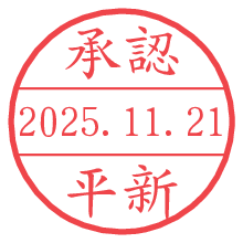 オプションの「電子透かし」をチェックし[生成]すると、見た目には分からないように、UNIXタイムスタンプを識別情報としてPNG形式の日付印に埋め込みます。 日付スタンプメーカーの使い方「部署」「名前」は最大8文字まで入力が可能です。「スタンプの色」を選択し、[生成]ボタン押下で印影画像が更新され、背景を透明に設定したPNG形式とPDF形式の印影画像がリンクからダウンロードできます。 オプションの「電子透かし」は、その性格上日付印ととても相性の良い付加サービスです。 別ページの「タイムスタンプと電子透かし」でも詳しく解説しますが、このオプションを追加することで、日付印が生成された日時に確かにその印が存在していることが証明されます。 ![]() 平新さんの電子印鑑が作れます。社内でのデータ書類閲覧確認用など、認印的な使い方のできる電子印鑑が作れます。 ![]() 古代文字で落款印が作れます。「落款スタンプメーカー」で作品を引き立たせる落款印が作れます。