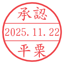 オプションの「電子透かし」をチェックし[生成]すると、見た目には分からないように、UNIXタイムスタンプを識別情報としてPNG形式の日付印に埋め込みます。 日付スタンプメーカーの使い方「部署」「名前」は最大8文字まで入力が可能です。「スタンプの色」を選択し、[生成]ボタン押下で印影画像が更新され、背景を透明に設定したPNG形式とPDF形式の印影画像がリンクからダウンロードできます。 オプションの「電子透かし」は、その性格上日付印ととても相性の良い付加サービスです。 別ページの「タイムスタンプと電子透かし」でも詳しく解説しますが、このオプションを追加することで、日付印が生成された日時に確かにその印が存在していることが証明されます。 ![]() 平栗さんの電子印鑑が作れます。社内でのデータ書類閲覧確認用など、認印的な使い方のできる電子印鑑が作れます。 ![]() 古代文字で落款印が作れます。「落款スタンプメーカー」で作品を引き立たせる落款印が作れます。