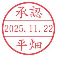 オプションの「電子透かし」をチェックし[生成]すると、見た目には分からないように、UNIXタイムスタンプを識別情報としてPNG形式の日付印に埋め込みます。 日付スタンプメーカーの使い方「部署」「名前」は最大8文字まで入力が可能です。「スタンプの色」を選択し、[生成]ボタン押下で印影画像が更新され、背景を透明に設定したPNG形式とPDF形式の印影画像がリンクからダウンロードできます。 オプションの「電子透かし」は、その性格上日付印ととても相性の良い付加サービスです。 別ページの「タイムスタンプと電子透かし」でも詳しく解説しますが、このオプションを追加することで、日付印が生成された日時に確かにその印が存在していることが証明されます。 ![]() 平畑さんの電子印鑑が作れます。社内でのデータ書類閲覧確認用など、認印的な使い方のできる電子印鑑が作れます。 ![]() 古代文字で落款印が作れます。「落款スタンプメーカー」で作品を引き立たせる落款印が作れます。
