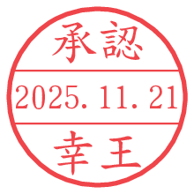 オプションの「電子透かし」をチェックし[生成]すると、見た目には分からないように、UNIXタイムスタンプを識別情報としてPNG形式の日付印に埋め込みます。 日付スタンプメーカーの使い方「部署」「名前」は最大8文字まで入力が可能です。「スタンプの色」を選択し、[生成]ボタン押下で印影画像が更新され、背景を透明に設定したPNG形式とPDF形式の印影画像がリンクからダウンロードできます。 オプションの「電子透かし」は、その性格上日付印ととても相性の良い付加サービスです。 別ページの「タイムスタンプと電子透かし」でも詳しく解説しますが、このオプションを追加することで、日付印が生成された日時に確かにその印が存在していることが証明されます。 ![]() 幸王さんの電子印鑑が作れます。社内でのデータ書類閲覧確認用など、認印的な使い方のできる電子印鑑が作れます。 ![]() 古代文字で落款印が作れます。「落款スタンプメーカー」で作品を引き立たせる落款印が作れます。