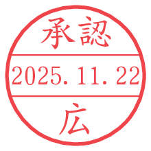 オプションの「電子透かし」をチェックし[生成]すると、見た目には分からないように、UNIXタイムスタンプを識別情報としてPNG形式の日付印に埋め込みます。 日付スタンプメーカーの使い方「部署」「名前」は最大8文字まで入力が可能です。「スタンプの色」を選択し、[生成]ボタン押下で印影画像が更新され、背景を透明に設定したPNG形式とPDF形式の印影画像がリンクからダウンロードできます。 オプションの「電子透かし」は、その性格上日付印ととても相性の良い付加サービスです。 別ページの「タイムスタンプと電子透かし」でも詳しく解説しますが、このオプションを追加することで、日付印が生成された日時に確かにその印が存在していることが証明されます。 ![]() 広さんの電子印鑑が作れます。社内でのデータ書類閲覧確認用など、認印的な使い方のできる電子印鑑が作れます。 ![]() 古代文字で落款印が作れます。「落款スタンプメーカー」で作品を引き立たせる落款印が作れます。