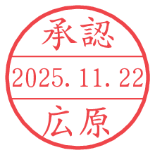 オプションの「電子透かし」をチェックし[生成]すると、見た目には分からないように、UNIXタイムスタンプを識別情報としてPNG形式の日付印に埋め込みます。 日付スタンプメーカーの使い方「部署」「名前」は最大8文字まで入力が可能です。「スタンプの色」を選択し、[生成]ボタン押下で印影画像が更新され、背景を透明に設定したPNG形式とPDF形式の印影画像がリンクからダウンロードできます。 オプションの「電子透かし」は、その性格上日付印ととても相性の良い付加サービスです。 別ページの「タイムスタンプと電子透かし」でも詳しく解説しますが、このオプションを追加することで、日付印が生成された日時に確かにその印が存在していることが証明されます。 ![]() 広原さんの電子印鑑が作れます。社内でのデータ書類閲覧確認用など、認印的な使い方のできる電子印鑑が作れます。 ![]() 古代文字で落款印が作れます。「落款スタンプメーカー」で作品を引き立たせる落款印が作れます。