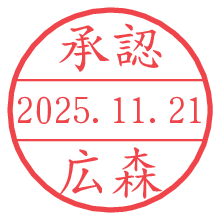 オプションの「電子透かし」をチェックし[生成]すると、見た目には分からないように、UNIXタイムスタンプを識別情報としてPNG形式の日付印に埋め込みます。 日付スタンプメーカーの使い方「部署」「名前」は最大8文字まで入力が可能です。「スタンプの色」を選択し、[生成]ボタン押下で印影画像が更新され、背景を透明に設定したPNG形式とPDF形式の印影画像がリンクからダウンロードできます。 オプションの「電子透かし」は、その性格上日付印ととても相性の良い付加サービスです。 別ページの「タイムスタンプと電子透かし」でも詳しく解説しますが、このオプションを追加することで、日付印が生成された日時に確かにその印が存在していることが証明されます。 ![]() 広森さんの電子印鑑が作れます。社内でのデータ書類閲覧確認用など、認印的な使い方のできる電子印鑑が作れます。 ![]() 古代文字で落款印が作れます。「落款スタンプメーカー」で作品を引き立たせる落款印が作れます。