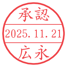 オプションの「電子透かし」をチェックし[生成]すると、見た目には分からないように、UNIXタイムスタンプを識別情報としてPNG形式の日付印に埋め込みます。 日付スタンプメーカーの使い方「部署」「名前」は最大8文字まで入力が可能です。「スタンプの色」を選択し、[生成]ボタン押下で印影画像が更新され、背景を透明に設定したPNG形式とPDF形式の印影画像がリンクからダウンロードできます。 オプションの「電子透かし」は、その性格上日付印ととても相性の良い付加サービスです。 別ページの「タイムスタンプと電子透かし」でも詳しく解説しますが、このオプションを追加することで、日付印が生成された日時に確かにその印が存在していることが証明されます。 ![]() 広永さんの電子印鑑が作れます。社内でのデータ書類閲覧確認用など、認印的な使い方のできる電子印鑑が作れます。 ![]() 古代文字で落款印が作れます。「落款スタンプメーカー」で作品を引き立たせる落款印が作れます。