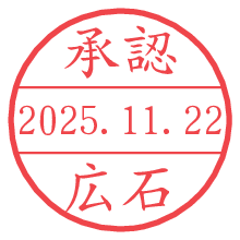 オプションの「電子透かし」をチェックし[生成]すると、見た目には分からないように、UNIXタイムスタンプを識別情報としてPNG形式の日付印に埋め込みます。 日付スタンプメーカーの使い方「部署」「名前」は最大8文字まで入力が可能です。「スタンプの色」を選択し、[生成]ボタン押下で印影画像が更新され、背景を透明に設定したPNG形式とPDF形式の印影画像がリンクからダウンロードできます。 オプションの「電子透かし」は、その性格上日付印ととても相性の良い付加サービスです。 別ページの「タイムスタンプと電子透かし」でも詳しく解説しますが、このオプションを追加することで、日付印が生成された日時に確かにその印が存在していることが証明されます。 ![]() 広石さんの電子印鑑が作れます。社内でのデータ書類閲覧確認用など、認印的な使い方のできる電子印鑑が作れます。 ![]() 古代文字で落款印が作れます。「落款スタンプメーカー」で作品を引き立たせる落款印が作れます。
