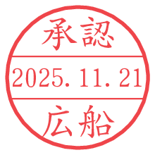 オプションの「電子透かし」をチェックし[生成]すると、見た目には分からないように、UNIXタイムスタンプを識別情報としてPNG形式の日付印に埋め込みます。 日付スタンプメーカーの使い方「部署」「名前」は最大8文字まで入力が可能です。「スタンプの色」を選択し、[生成]ボタン押下で印影画像が更新され、背景を透明に設定したPNG形式とPDF形式の印影画像がリンクからダウンロードできます。 オプションの「電子透かし」は、その性格上日付印ととても相性の良い付加サービスです。 別ページの「タイムスタンプと電子透かし」でも詳しく解説しますが、このオプションを追加することで、日付印が生成された日時に確かにその印が存在していることが証明されます。 ![]() 広船さんの電子印鑑が作れます。社内でのデータ書類閲覧確認用など、認印的な使い方のできる電子印鑑が作れます。 ![]() 古代文字で落款印が作れます。「落款スタンプメーカー」で作品を引き立たせる落款印が作れます。
