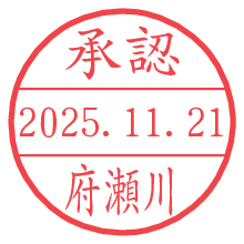 オプションの「電子透かし」をチェックし[生成]すると、見た目には分からないように、UNIXタイムスタンプを識別情報としてPNG形式の日付印に埋め込みます。 日付スタンプメーカーの使い方「部署」「名前」は最大8文字まで入力が可能です。「スタンプの色」を選択し、[生成]ボタン押下で印影画像が更新され、背景を透明に設定したPNG形式とPDF形式の印影画像がリンクからダウンロードできます。 オプションの「電子透かし」は、その性格上日付印ととても相性の良い付加サービスです。 別ページの「タイムスタンプと電子透かし」でも詳しく解説しますが、このオプションを追加することで、日付印が生成された日時に確かにその印が存在していることが証明されます。 ![]() 府瀬川さんの電子印鑑が作れます。社内でのデータ書類閲覧確認用など、認印的な使い方のできる電子印鑑が作れます。 ![]() 古代文字で落款印が作れます。「落款スタンプメーカー」で作品を引き立たせる落款印が作れます。