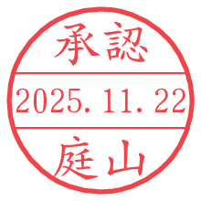 オプションの「電子透かし」をチェックし[生成]すると、見た目には分からないように、UNIXタイムスタンプを識別情報としてPNG形式の日付印に埋め込みます。 日付スタンプメーカーの使い方「部署」「名前」は最大8文字まで入力が可能です。「スタンプの色」を選択し、[生成]ボタン押下で印影画像が更新され、背景を透明に設定したPNG形式とPDF形式の印影画像がリンクからダウンロードできます。 オプションの「電子透かし」は、その性格上日付印ととても相性の良い付加サービスです。 別ページの「タイムスタンプと電子透かし」でも詳しく解説しますが、このオプションを追加することで、日付印が生成された日時に確かにその印が存在していることが証明されます。 ![]() 庭山さんの電子印鑑が作れます。社内でのデータ書類閲覧確認用など、認印的な使い方のできる電子印鑑が作れます。 ![]() 古代文字で落款印が作れます。「落款スタンプメーカー」で作品を引き立たせる落款印が作れます。