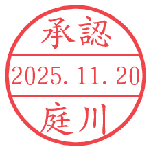 オプションの「電子透かし」をチェックし[生成]すると、見た目には分からないように、UNIXタイムスタンプを識別情報としてPNG形式の日付印に埋め込みます。 日付スタンプメーカーの使い方「部署」「名前」は最大8文字まで入力が可能です。「スタンプの色」を選択し、[生成]ボタン押下で印影画像が更新され、背景を透明に設定したPNG形式とPDF形式の印影画像がリンクからダウンロードできます。 オプションの「電子透かし」は、その性格上日付印ととても相性の良い付加サービスです。 別ページの「タイムスタンプと電子透かし」でも詳しく解説しますが、このオプションを追加することで、日付印が生成された日時に確かにその印が存在していることが証明されます。 ![]() 庭川さんの電子印鑑が作れます。社内でのデータ書類閲覧確認用など、認印的な使い方のできる電子印鑑が作れます。 ![]() 古代文字で落款印が作れます。「落款スタンプメーカー」で作品を引き立たせる落款印が作れます。