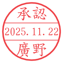 オプションの「電子透かし」をチェックし[生成]すると、見た目には分からないように、UNIXタイムスタンプを識別情報としてPNG形式の日付印に埋め込みます。 日付スタンプメーカーの使い方「部署」「名前」は最大8文字まで入力が可能です。「スタンプの色」を選択し、[生成]ボタン押下で印影画像が更新され、背景を透明に設定したPNG形式とPDF形式の印影画像がリンクからダウンロードできます。 オプションの「電子透かし」は、その性格上日付印ととても相性の良い付加サービスです。 別ページの「タイムスタンプと電子透かし」でも詳しく解説しますが、このオプションを追加することで、日付印が生成された日時に確かにその印が存在していることが証明されます。 ![]() 廣野さんの電子印鑑が作れます。社内でのデータ書類閲覧確認用など、認印的な使い方のできる電子印鑑が作れます。 ![]() 古代文字で落款印が作れます。「落款スタンプメーカー」で作品を引き立たせる落款印が作れます。