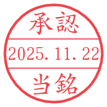 オプションの「電子透かし」をチェックし[生成]すると、見た目には分からないように、UNIXタイムスタンプを識別情報としてPNG形式の日付印に埋め込みます。 日付スタンプメーカーの使い方「部署」「名前」は最大8文字まで入力が可能です。「スタンプの色」を選択し、[生成]ボタン押下で印影画像が更新され、背景を透明に設定したPNG形式とPDF形式の印影画像がリンクからダウンロードできます。 オプションの「電子透かし」は、その性格上日付印ととても相性の良い付加サービスです。 別ページの「タイムスタンプと電子透かし」でも詳しく解説しますが、このオプションを追加することで、日付印が生成された日時に確かにその印が存在していることが証明されます。 ![]() 当銘さんの電子印鑑が作れます。社内でのデータ書類閲覧確認用など、認印的な使い方のできる電子印鑑が作れます。 ![]() 古代文字で落款印が作れます。「落款スタンプメーカー」で作品を引き立たせる落款印が作れます。