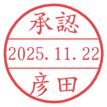 オプションの「電子透かし」をチェックし[生成]すると、見た目には分からないように、UNIXタイムスタンプを識別情報としてPNG形式の日付印に埋め込みます。 日付スタンプメーカーの使い方「部署」「名前」は最大8文字まで入力が可能です。「スタンプの色」を選択し、[生成]ボタン押下で印影画像が更新され、背景を透明に設定したPNG形式とPDF形式の印影画像がリンクからダウンロードできます。 オプションの「電子透かし」は、その性格上日付印ととても相性の良い付加サービスです。 別ページの「タイムスタンプと電子透かし」でも詳しく解説しますが、このオプションを追加することで、日付印が生成された日時に確かにその印が存在していることが証明されます。 ![]() 彦田さんの電子印鑑が作れます。社内でのデータ書類閲覧確認用など、認印的な使い方のできる電子印鑑が作れます。 ![]() 古代文字で落款印が作れます。「落款スタンプメーカー」で作品を引き立たせる落款印が作れます。