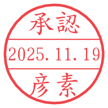 オプションの「電子透かし」をチェックし[生成]すると、見た目には分からないように、UNIXタイムスタンプを識別情報としてPNG形式の日付印に埋め込みます。 日付スタンプメーカーの使い方「部署」「名前」は最大8文字まで入力が可能です。「スタンプの色」を選択し、[生成]ボタン押下で印影画像が更新され、背景を透明に設定したPNG形式とPDF形式の印影画像がリンクからダウンロードできます。 オプションの「電子透かし」は、その性格上日付印ととても相性の良い付加サービスです。 別ページの「タイムスタンプと電子透かし」でも詳しく解説しますが、このオプションを追加することで、日付印が生成された日時に確かにその印が存在していることが証明されます。 ![]() 彦素さんの電子印鑑が作れます。社内でのデータ書類閲覧確認用など、認印的な使い方のできる電子印鑑が作れます。 ![]() 古代文字で落款印が作れます。「落款スタンプメーカー」で作品を引き立たせる落款印が作れます。