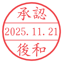 オプションの「電子透かし」をチェックし[生成]すると、見た目には分からないように、UNIXタイムスタンプを識別情報としてPNG形式の日付印に埋め込みます。 日付スタンプメーカーの使い方「部署」「名前」は最大8文字まで入力が可能です。「スタンプの色」を選択し、[生成]ボタン押下で印影画像が更新され、背景を透明に設定したPNG形式とPDF形式の印影画像がリンクからダウンロードできます。 オプションの「電子透かし」は、その性格上日付印ととても相性の良い付加サービスです。 別ページの「タイムスタンプと電子透かし」でも詳しく解説しますが、このオプションを追加することで、日付印が生成された日時に確かにその印が存在していることが証明されます。 ![]() 後和さんの電子印鑑が作れます。社内でのデータ書類閲覧確認用など、認印的な使い方のできる電子印鑑が作れます。 ![]() 古代文字で落款印が作れます。「落款スタンプメーカー」で作品を引き立たせる落款印が作れます。