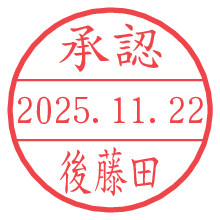 オプションの「電子透かし」をチェックし[生成]すると、見た目には分からないように、UNIXタイムスタンプを識別情報としてPNG形式の日付印に埋め込みます。 日付スタンプメーカーの使い方「部署」「名前」は最大8文字まで入力が可能です。「スタンプの色」を選択し、[生成]ボタン押下で印影画像が更新され、背景を透明に設定したPNG形式とPDF形式の印影画像がリンクからダウンロードできます。 オプションの「電子透かし」は、その性格上日付印ととても相性の良い付加サービスです。 別ページの「タイムスタンプと電子透かし」でも詳しく解説しますが、このオプションを追加することで、日付印が生成された日時に確かにその印が存在していることが証明されます。 ![]() 後藤田さんの電子印鑑が作れます。社内でのデータ書類閲覧確認用など、認印的な使い方のできる電子印鑑が作れます。 ![]() 古代文字で落款印が作れます。「落款スタンプメーカー」で作品を引き立たせる落款印が作れます。