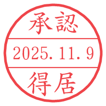 オプションの「電子透かし」をチェックし[生成]すると、見た目には分からないように、UNIXタイムスタンプを識別情報としてPNG形式の日付印に埋め込みます。 日付スタンプメーカーの使い方「部署」「名前」は最大8文字まで入力が可能です。「スタンプの色」を選択し、[生成]ボタン押下で印影画像が更新され、背景を透明に設定したPNG形式とPDF形式の印影画像がリンクからダウンロードできます。 オプションの「電子透かし」は、その性格上日付印ととても相性の良い付加サービスです。 別ページの「タイムスタンプと電子透かし」でも詳しく解説しますが、このオプションを追加することで、日付印が生成された日時に確かにその印が存在していることが証明されます。 ![]() 得居さんの電子印鑑が作れます。社内でのデータ書類閲覧確認用など、認印的な使い方のできる電子印鑑が作れます。 ![]() 古代文字で落款印が作れます。「落款スタンプメーカー」で作品を引き立たせる落款印が作れます。