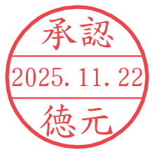 オプションの「電子透かし」をチェックし[生成]すると、見た目には分からないように、UNIXタイムスタンプを識別情報としてPNG形式の日付印に埋め込みます。 日付スタンプメーカーの使い方「部署」「名前」は最大8文字まで入力が可能です。「スタンプの色」を選択し、[生成]ボタン押下で印影画像が更新され、背景を透明に設定したPNG形式とPDF形式の印影画像がリンクからダウンロードできます。 オプションの「電子透かし」は、その性格上日付印ととても相性の良い付加サービスです。 別ページの「タイムスタンプと電子透かし」でも詳しく解説しますが、このオプションを追加することで、日付印が生成された日時に確かにその印が存在していることが証明されます。 ![]() 徳元さんの電子印鑑が作れます。社内でのデータ書類閲覧確認用など、認印的な使い方のできる電子印鑑が作れます。 ![]() 古代文字で落款印が作れます。「落款スタンプメーカー」で作品を引き立たせる落款印が作れます。