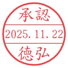 オプションの「電子透かし」をチェックし[生成]すると、見た目には分からないように、UNIXタイムスタンプを識別情報としてPNG形式の日付印に埋め込みます。 日付スタンプメーカーの使い方「部署」「名前」は最大8文字まで入力が可能です。「スタンプの色」を選択し、[生成]ボタン押下で印影画像が更新され、背景を透明に設定したPNG形式とPDF形式の印影画像がリンクからダウンロードできます。 オプションの「電子透かし」は、その性格上日付印ととても相性の良い付加サービスです。 別ページの「タイムスタンプと電子透かし」でも詳しく解説しますが、このオプションを追加することで、日付印が生成された日時に確かにその印が存在していることが証明されます。 ![]() 徳弘さんの電子印鑑が作れます。社内でのデータ書類閲覧確認用など、認印的な使い方のできる電子印鑑が作れます。 ![]() 古代文字で落款印が作れます。「落款スタンプメーカー」で作品を引き立たせる落款印が作れます。