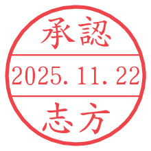 オプションの「電子透かし」をチェックし[生成]すると、見た目には分からないように、UNIXタイムスタンプを識別情報としてPNG形式の日付印に埋め込みます。 日付スタンプメーカーの使い方「部署」「名前」は最大8文字まで入力が可能です。「スタンプの色」を選択し、[生成]ボタン押下で印影画像が更新され、背景を透明に設定したPNG形式とPDF形式の印影画像がリンクからダウンロードできます。 オプションの「電子透かし」は、その性格上日付印ととても相性の良い付加サービスです。 別ページの「タイムスタンプと電子透かし」でも詳しく解説しますが、このオプションを追加することで、日付印が生成された日時に確かにその印が存在していることが証明されます。 ![]() 志方さんの電子印鑑が作れます。社内でのデータ書類閲覧確認用など、認印的な使い方のできる電子印鑑が作れます。 ![]() 古代文字で落款印が作れます。「落款スタンプメーカー」で作品を引き立たせる落款印が作れます。